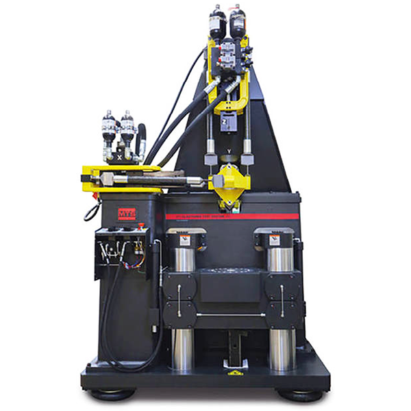 Испытательный трехосный стенд эластомеров MTS сконструирован для обеспечения возбуждения точных амплитуд на испытуемом образце по каждой оси для повторяемости.