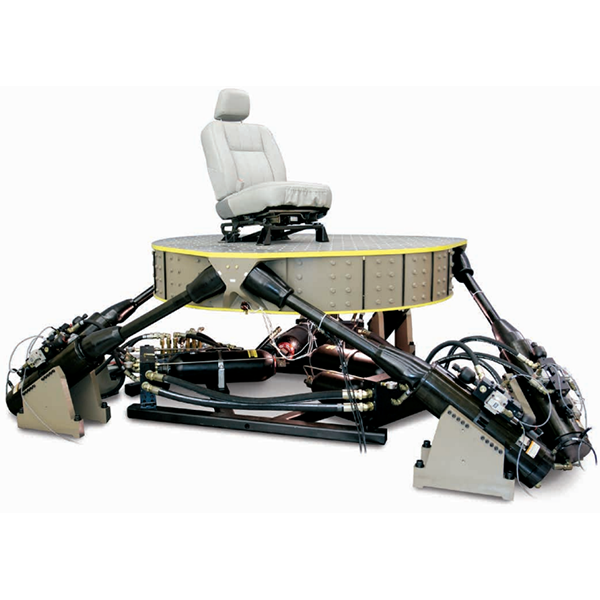 Шестицилиндровые системы MTS приводятся в движение шестью сервогидравлическими цилиндрами. Инвертированная герметичная конструкция привода и гидростатические подшипники обеспечивают ультра-жесткую конфигурацию с низким трением, что улучшает контроль и увеличивает срок службы системы. Гидроцилиндры присоединяются к столу посредством запатентованных высокочастотных поворотных и стоечных сборок. Положение платформы определяется продвинутой системой сервоуправления с обратной связью по перемещению и ускорению. Также благодаря особой моноблочной конструкции улучшается частотная характеристика.