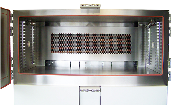 - Однородность температуры (выполняется с помощью 9 датчиков PT100, установленных на расстоянии 15 см от стен) ниже ±1,5 °C
